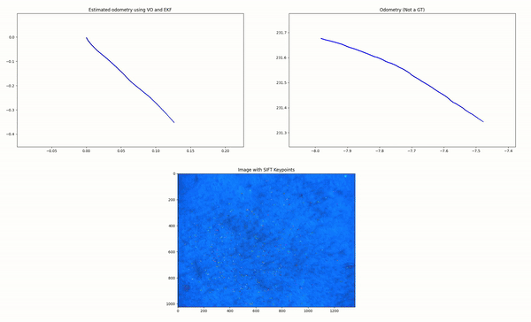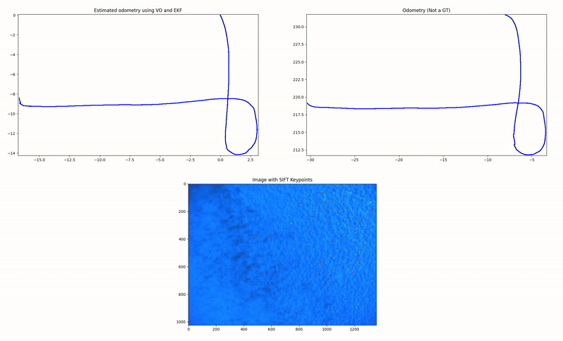 Below are visual demonstrations of the Monocular VO system in action, showing the estimated motion trajectory compared to the recorded odometry data from the Sparus-II AUV.
