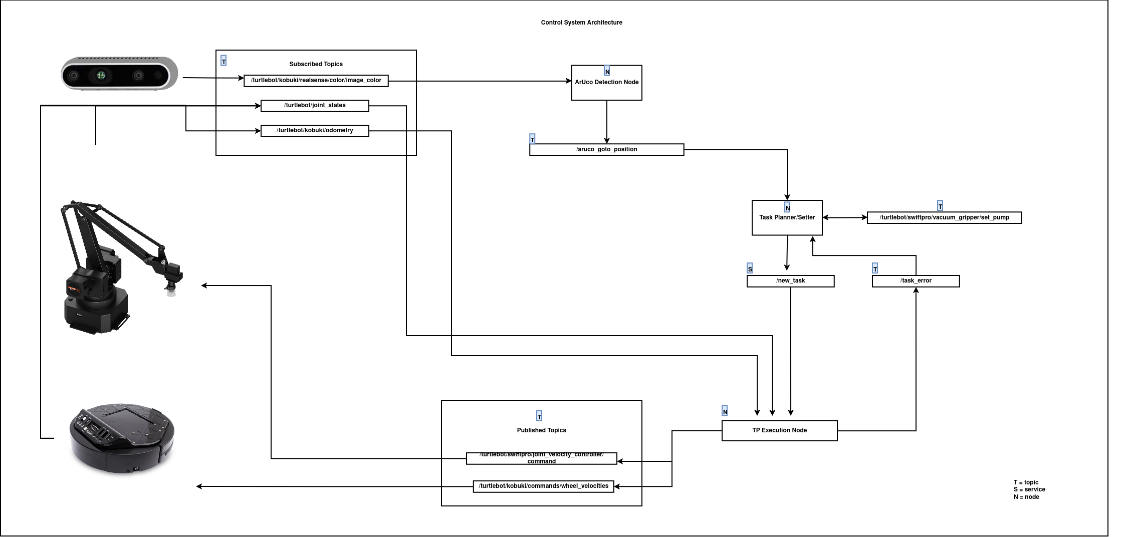 This project describes the design and implementation of a kinematic control system for a differential-drive robot (Kobuki Turtlebot 2) equipped with a 4 DOF manipulator (uFactory uArm Swift Pro). The system utilizes the Task-Priority Redundancy Resolution Algorithm to manage the robot’s redundant degrees of freedom and to prioritize tasks based on their importance.